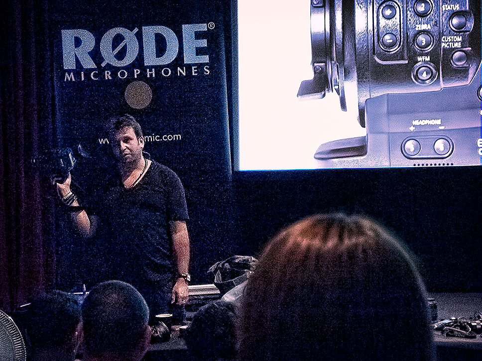 Phillip Bloom showing us his new Canon C300 and giving the audience a major case of camera envy. A seminar hosted by the Film and Television Institute in Fremantle and run in conjunction with Røde Microphones. Olympus Pen EP-2 with 14-42 mm lens. 1/30 sec. at f5.6, ISO 6400.