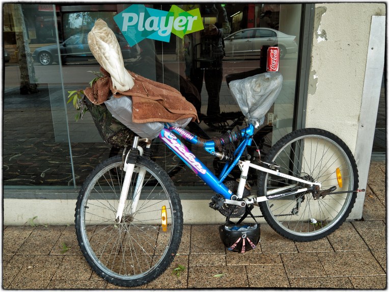 I see this bloke and his pet parrot all over Northbridge. In fact it is common to see just the parrot and the bicycle outside the Northbridge TAB (betting shop or bookies for the non-Aussies).