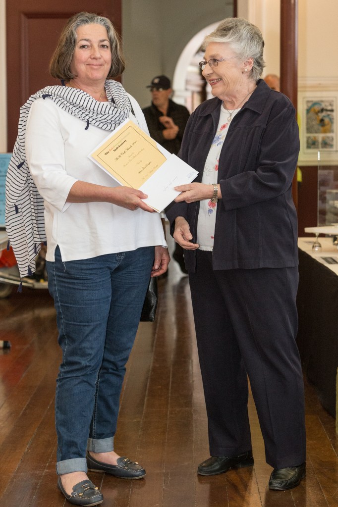 Well it is that time of year again in the York arts calendar – the Act-Belong-Commit York Society Art & Craft Awards for 2016 are being held at the York Town Hall. Yours truly was asked to take the photos of the prize giving ceremony – the brief was to get the prize-winning artist accepting their prize. Classic grip and grin as it is known in the trade. I hate grip and grin with a vengeance – it is boring and conveys absolutely nothing. So 2pm on Saturday sees me parked in the front row at the award ceremony, I’m there to take an endless procession of dull pictures. The photo below of Louise Gore Langton accepting her award from Dr Pamela Statham-Drew is one of seventeen similar pictures and is typical of the genre. It’s an OKish photo, but all it shows is a woman giving another woman a piece of paper. The photo does not tell you why Louise is being given a piece a paper, only the caption does.