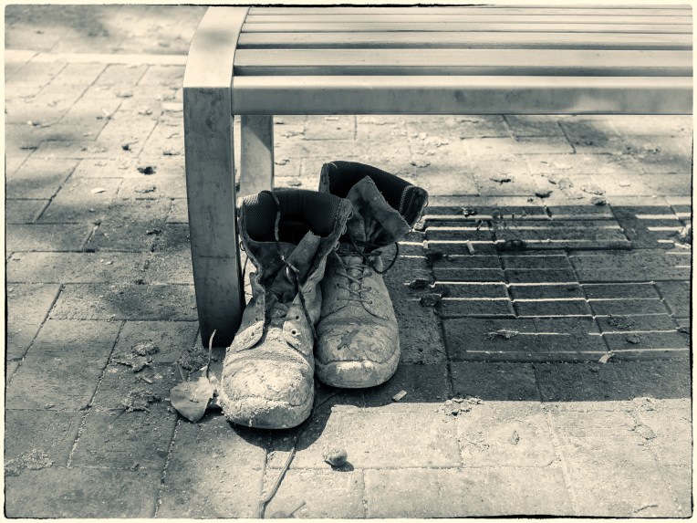 It is true Australians don’t like to wear many clothes. If the temperature dips to 20℃ then they’d rather light a wood fire than put something warmer on. We used to live opposite this couple and he would wander around the front garden in his reg grundies and nothing else. It got to the stage where we could tell his mood from the colour – yellow was happy and dark blue was grumpy and down. As you walk around (rural or urban) it is not uncommon to find discarded items of clothing, it’s almost as if Australians repel clothes and they spontaneously drop off. The most common items found are usually footwear, then comes shirts, trousers and underwear. It is quite hard to fathom how someone can go out fully dressed and come home minus say their trousers. Anyway the photos below are a selection of items I have photographed over the years.