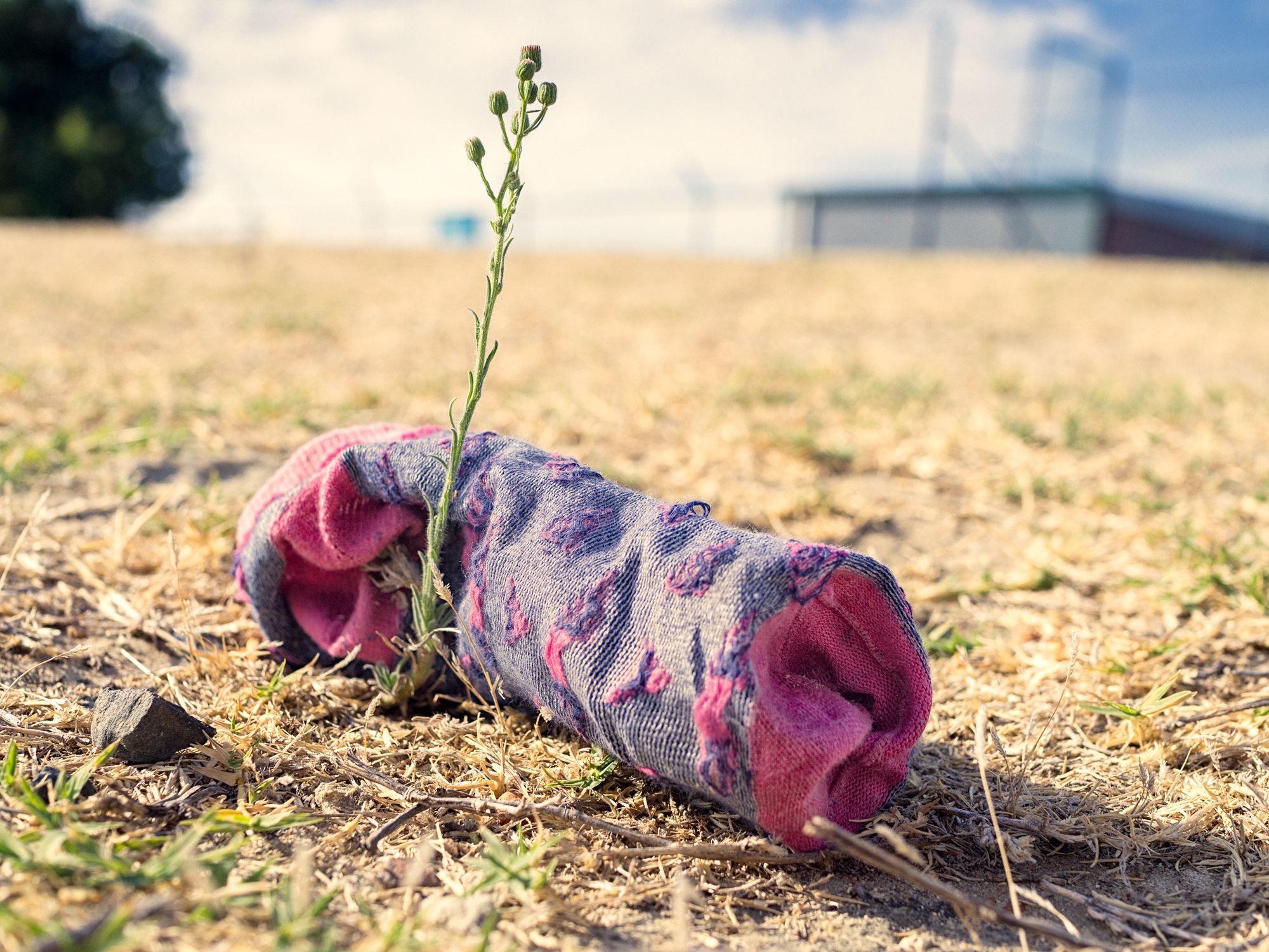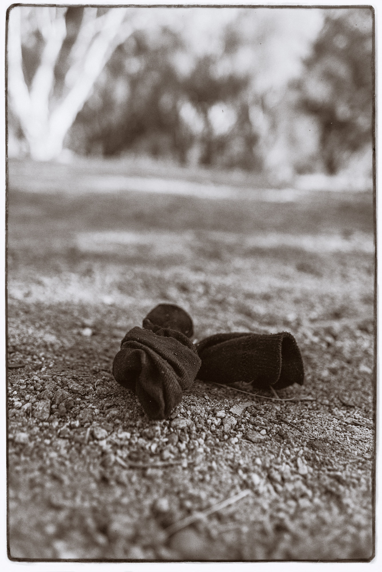 It is true Australians don’t like to wear many clothes. If the temperature dips to 20℃ then they’d rather light a wood fire than put something warmer on. We used to live opposite this couple and he would wander around the front garden in his reg grundies and nothing else. It got to the stage where we could tell his mood from the colour – yellow was happy and dark blue was grumpy and down. As you walk around (rural or urban) it is not uncommon to find discarded items of clothing, it’s almost as if Australians repel clothes and they spontaneously drop off. The most common items found are usually footwear, then comes shirts, trousers and underwear. It is quite hard to fathom how someone can go out fully dressed and come home minus say their trousers. Anyway the photos below are a selection of items I have photographed over the years.