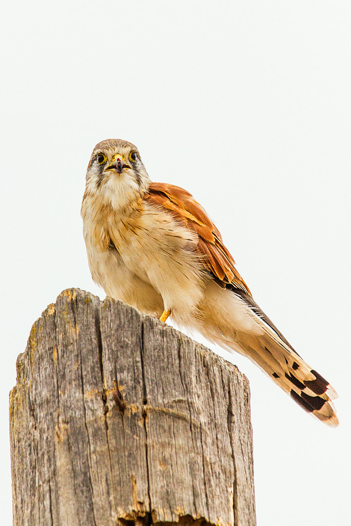 The other day I’d been up on Mount Brown (which is a grand name for a moderately sized hill) looking for interesting birds to photograph. The conditions were great, but the birds uncooperative so I gave up and started driving home. At the bottom of the hill I caught out of the corner of my eye a nankeen kestrel hunting on an empty block. It swooped down into the long grass and quickly took off again obviously holding something. So I did something I’d never thought that I’d do. I’ve just been really getting into this bird photography malarkey and have been watching YouTube videos for tips. Mostly British videos, but the occasional American one. I’d noticed that quite a few of the American ones had the photographers driving around looking for birds and photographing then from the car. Well I started to follow this bird in the car. It didn’t go far. It landed on the power lines outside of Marwick’s Barn obviously to catch its breath. It obviously decided that the power lines was no place to deal with the kicking and struggling mouse so it moved to the top of a nearby power pole. So I pulled up on to the dirt shoulder and hanging out of the driver’s side window I photographed madly.