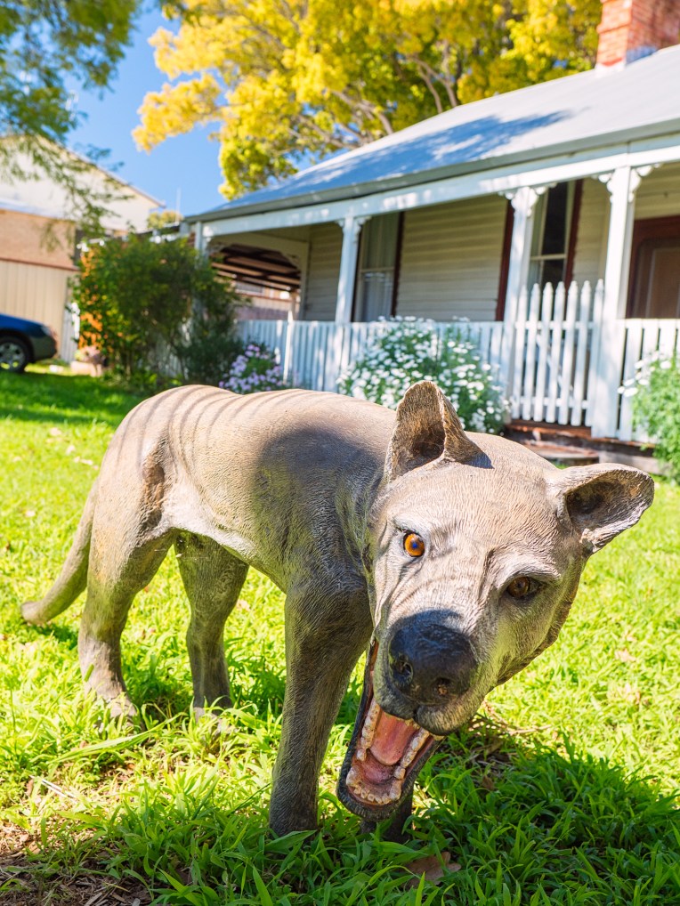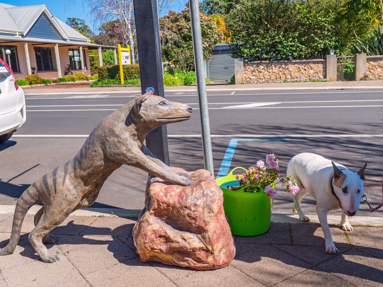 As it would happen we found ourselves in Nannup the other week. We weren’t looking for the tiger, but we certainly found them as we walked up and down the main street. Again like in Tassie the thylacine has been “gnomified” and can be found in front gardens all over the shop.