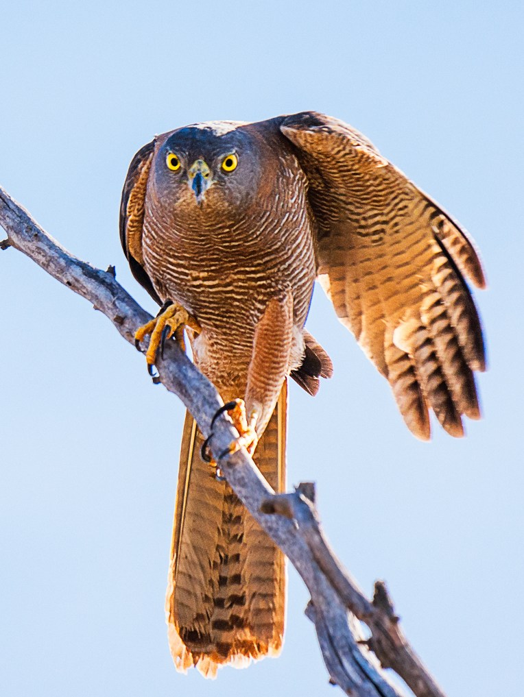 What you Looking At? Brown goshawk, (Accipiterr fasciatus.) called Matwelitj, by the Nyoongar people of Western Australia. Avon River Walk, York, Western Australia.