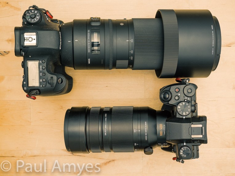 The Canon EOS6d with Sigma 150-600mm lens compared to the Panasonic G85, which uses the same sensor format and lens mount as Olympus, with the Panasonic Leica 100-400mm lens. The Panasonic has great reach, better video, the same number of megapixels, weighs less and costs less.