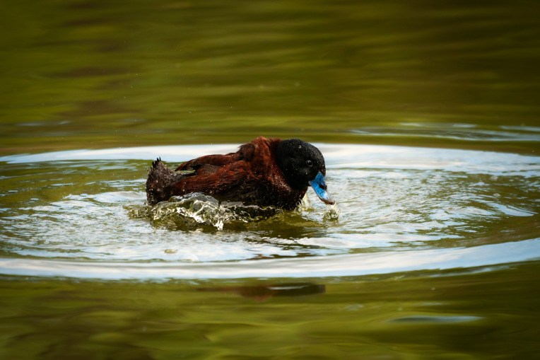 The blue-billed duck has spectacular mating display. He’ll swim up to a hen and then he presses his head into the water and blows bubbles. Having done that the next stage is to flick his head backward throwing water about with his bill. Then he’ll rise up out of the water with his back arched as if in spasm, with possibly his legs kicking water spray above his body. He’ll then have a bit of a shake check to see if his victim is still watching and then repeat the whole thing again. The human equivalent is when the bloke goes full on Travolta – you know he’s seen Saturday Night Fever, Grease, and Pulp Fiction and thinks he’s dead good at dancing. Now if the drake has been successful he’ll chase the hen and then jump her – she often gets completely submerged in the process. It’s a bit like some men think a nudge in the ribs is foreplay. Once over they straighten their feathers the hen heads off to the reeds to build a nest, lay her eggs and raise the young. The drake does a runner and chooses to hang out with his mates until another hen takes his fancy. There’s no child support payments for ducks.