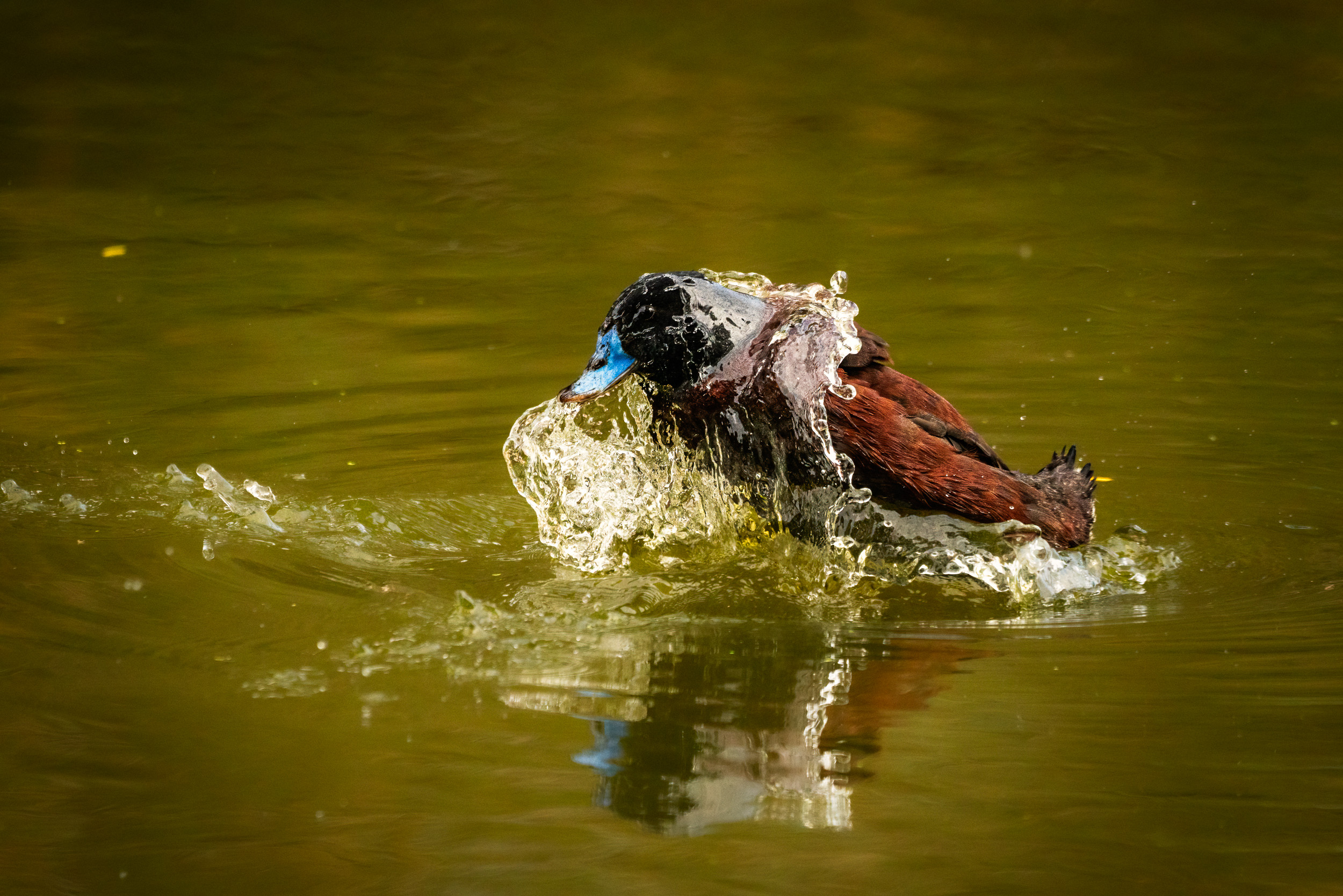I was at Tomato Lake the other day watching the ducks while the Beloved Significant Other was working at attaining croquet excellence. After a while I came to the conclusion that in many ways people and ducks share similar behaviour. Like men the drake is up for rumpy pumpy at any time which can prove annoying for the females. When a drake gets in the mood for horizontal folk dancing he’ll start flirting. This basically involves getting the attention of a female. Drakes prefer to get amorous on the water and will shake their tail feather and bob their heads up and down. A bit like drunken males on the pull at the disco. If the hen doesn’t move in the general direction of away then the drake assumes that she is up for it and pulls out his really smooth moves. This starts with flicking water at the hen. My partner says adolescent boys do this to try and get attention from girls and it was really annoying. What happens next is a bit dependent on the species of duck, but the blue-billed ducks I was watching the other day have quite elaborate moves.