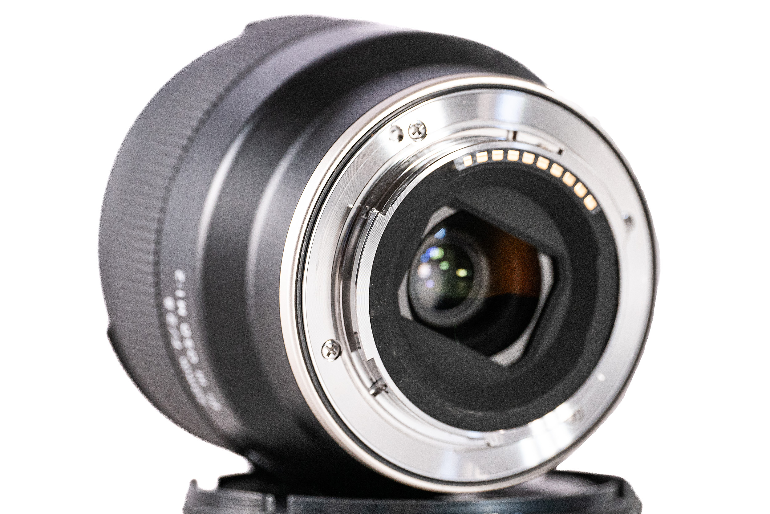 The body is made out of some form of engineering plastic and the lens mount appears to be chrome plated brass which is nice. There is an “o” ring which provides some semblance of sealing from the elements at the mount. There is no other weather sealing and no indication as to the level of sealing and Tamron on their website just say that it has a “Moisture-Resistant Construction”. Tamron also claim that the front lens element has a fluorine coating which is dirt resistant. The only control on the lens is the ribbed focus ring which is of the fly-by-wire type and it has no hard stops or any form of tactile feedback when turning it. Bad news if you want to do manual video focus pulls. The lens comes with a petal shaped lens hood that bayonets into place.