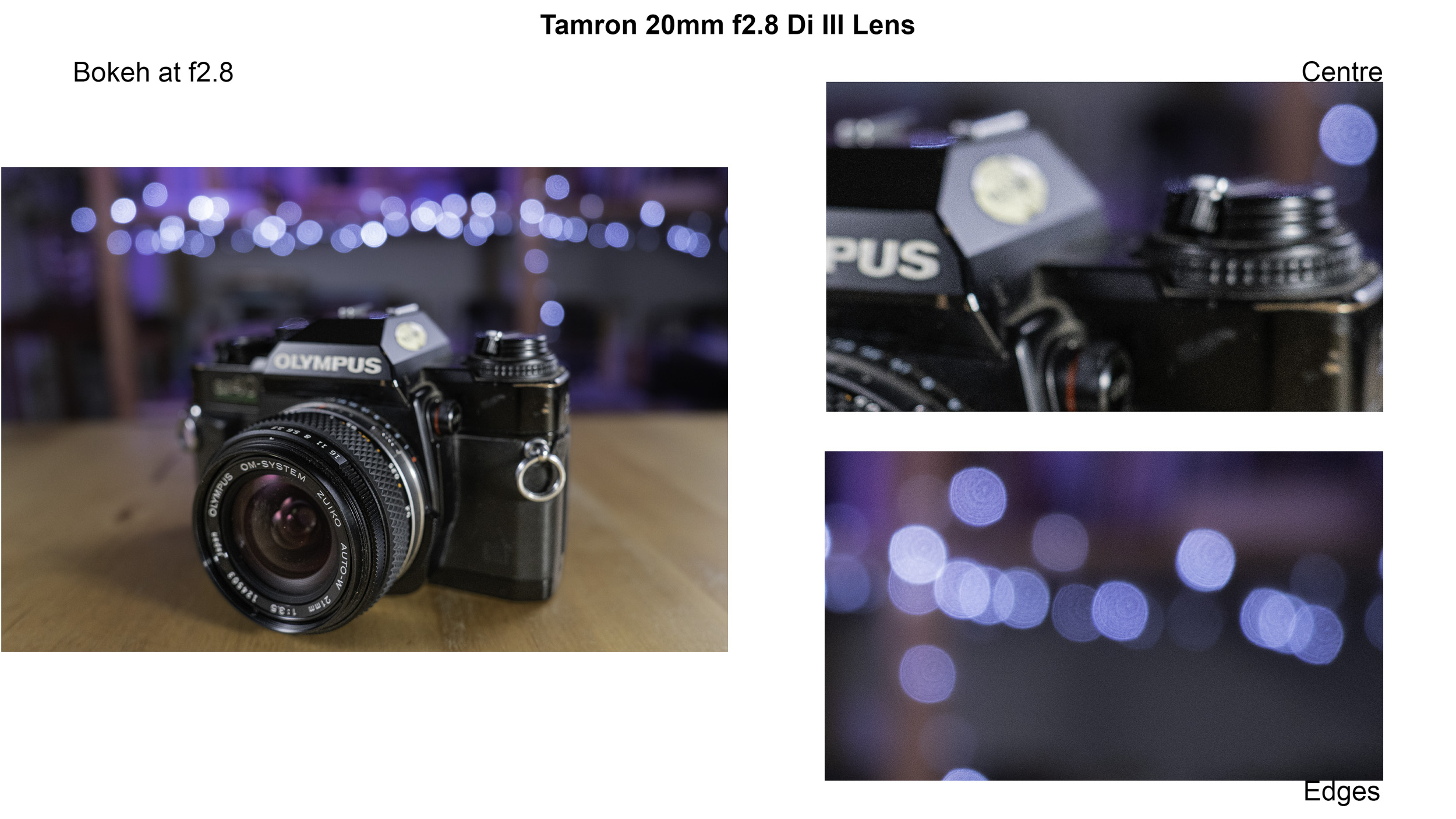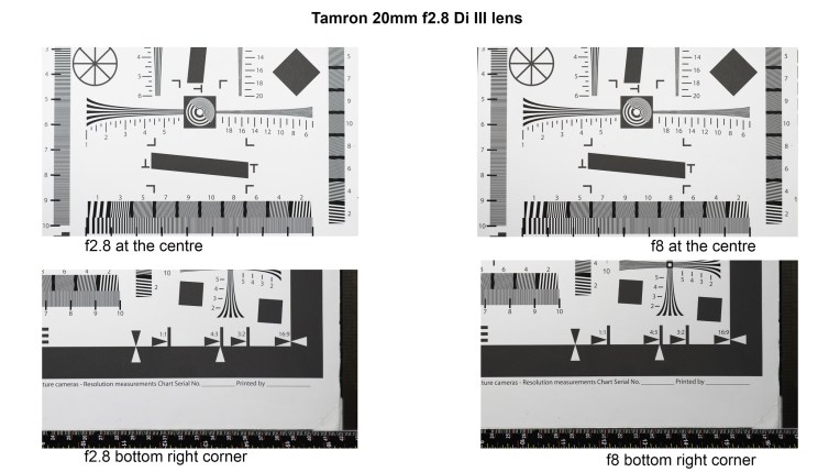 So in real terms how bad is the distortion? Well comparing the Tamron, which is a very modern design to the Olympus OM Zuiko 21mm f3.5 released in 1984 and the Canon EF 20mm f2.8 USM from 1992 we can see that the Tamron has considerably worse distortion. This is very surprising as the two older lenses are retrofocus designs. SLRs have a big flippy flappy mirror between the lens and the film/sensor and this meant in the early days of SLR photography making wide angle lenses impossible because the rear lens element would foul the mirror. The breakthrough came in 1950 when Pierre Angénieux invented the retrofocus lens which is a kind of “reverse” telephoto design where the lens elements closest to the film plane have a negative effect making the image smaller. The downsides are more glass elements which means more air to glass surfaces which means more refraction which means more potential chromatic aberration and distortion. So the fact that the Canon and Olympus lenses have a better performance with their compromised design is saying something.
