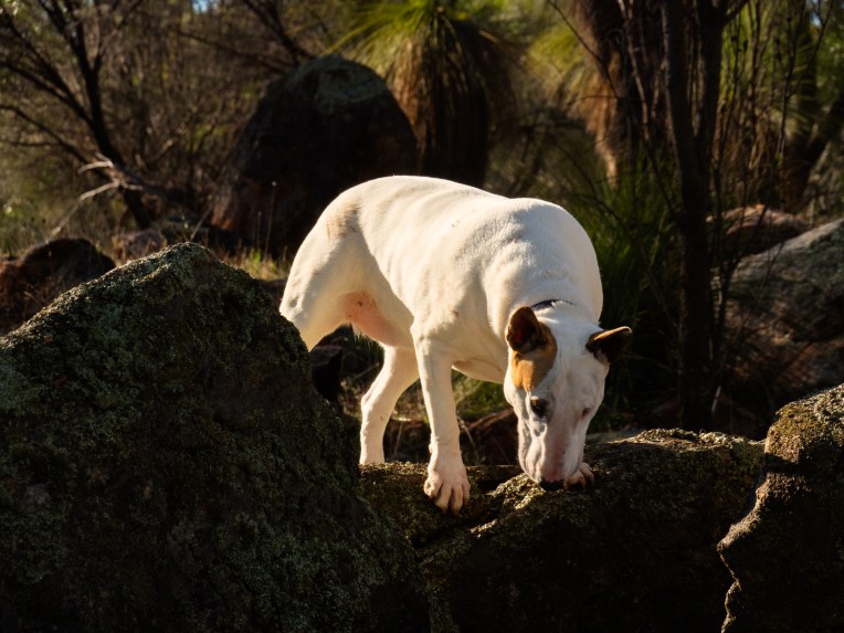 Frida our wayward and reluctant Bull Terrier loves it. There are rocky outcrops to stand on and strike a heroic pose, holes to look down and lots and lots of interesting things to smell. It is the one place where she enthusiastically jumps out of the car rather than having to be enticed out with bribes.