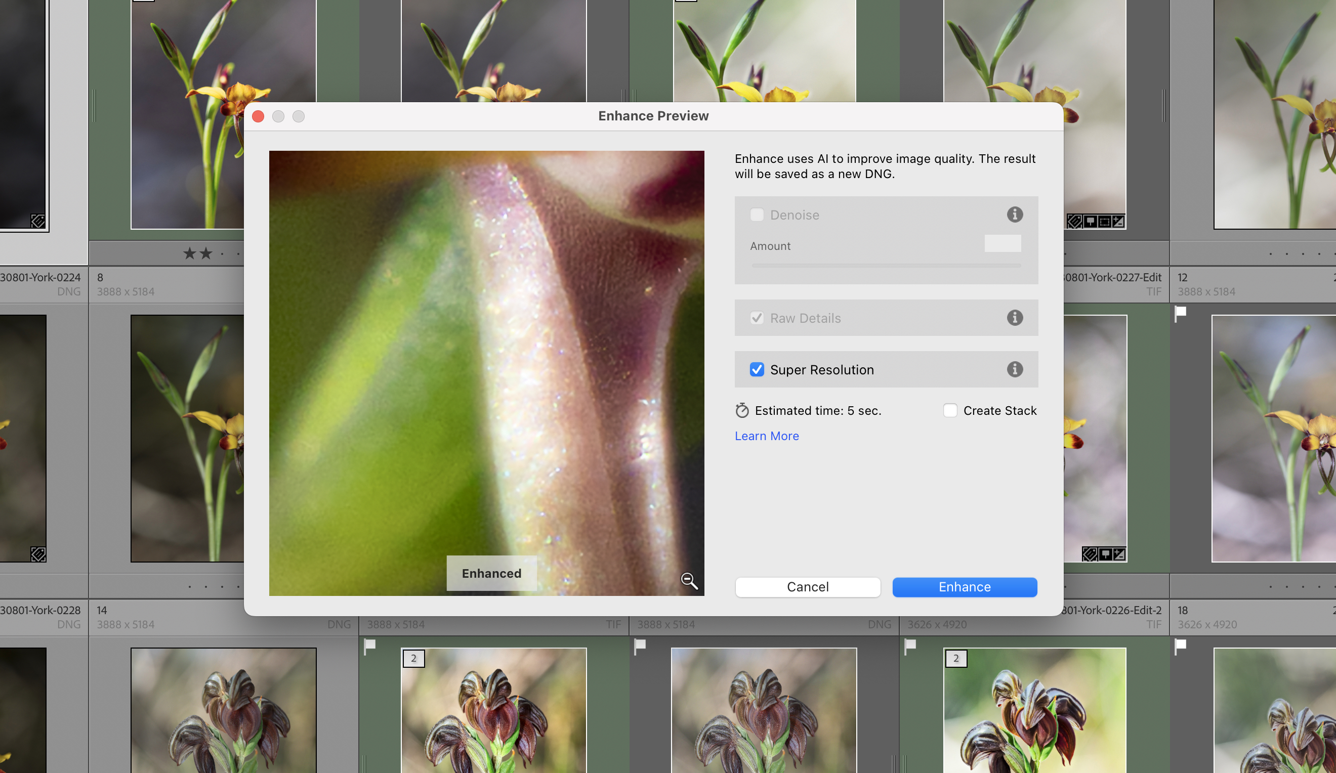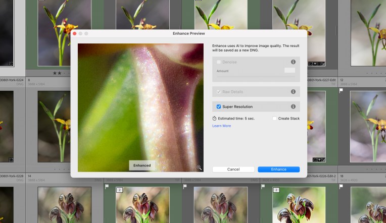 Since then, however, a new alternative has come up and that is using AI powered software to enlarge images. Exposure Software’s Blow Up was one of the first, Topaz Labs has Gigapixel AI which are plugins for Photoshop and Lightroom. Adobe now has Super Resolution as part of its Enhance function in Lightroom. GigaPixel is $99 USD, Blow Up is $125 AUD and Super Resolution comes with your Lightroom subscription. So do these make teleconverters obsolete? If you want the best image quality should you even use any of these options?