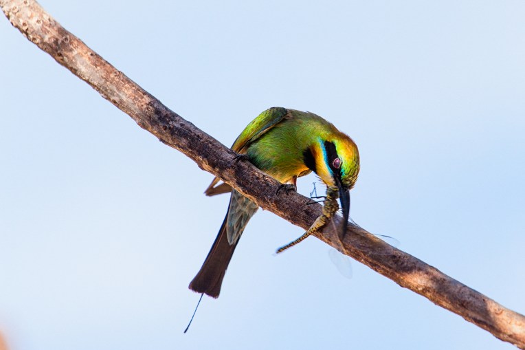 Looks like the Rainbow Bee-eater is going for the pile driver!