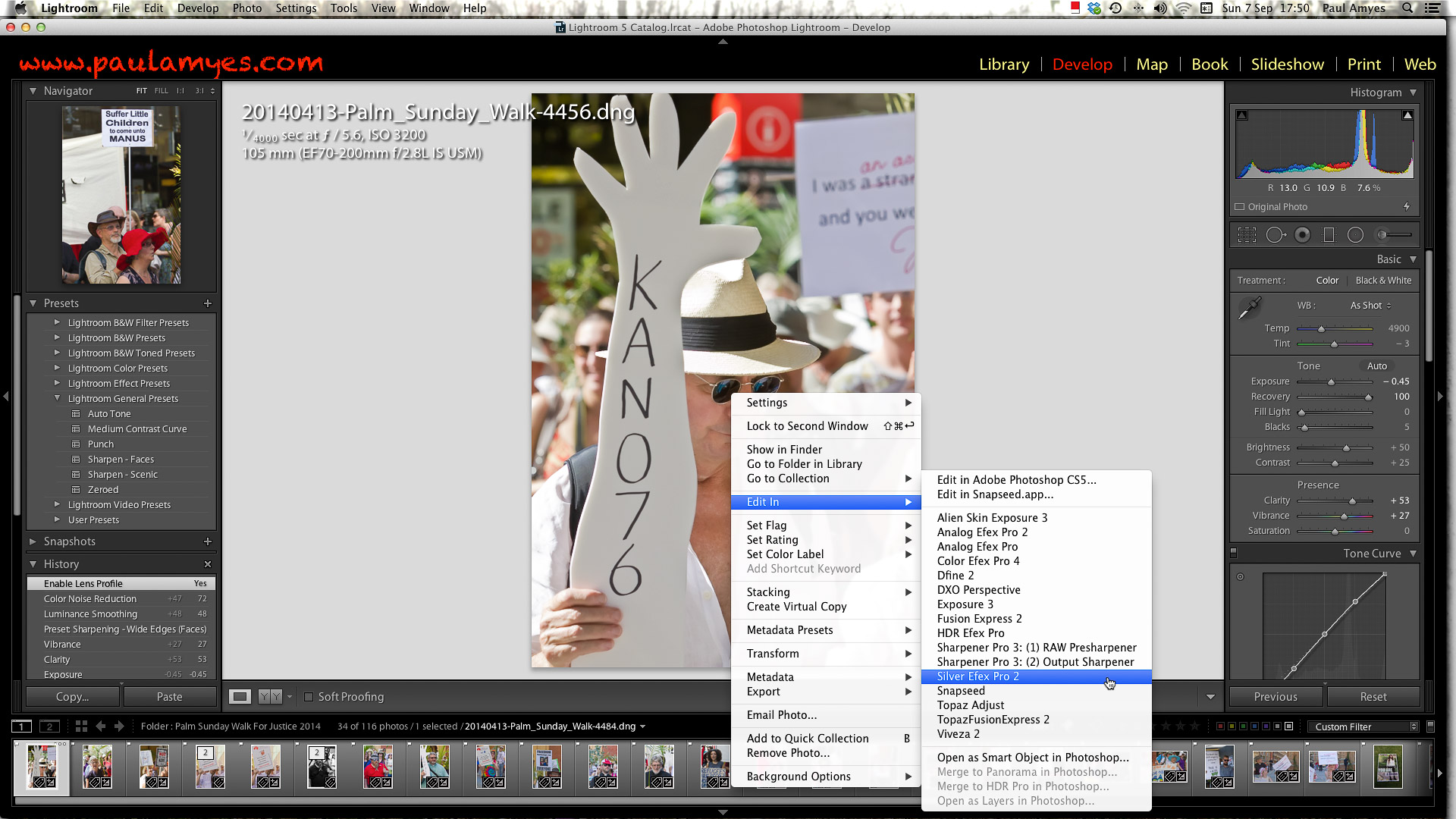 If I think the image requires further work or the nature of the project demands that then I choose to edit in an external application – in this case Silver Efex Pro2 a Lightroom plugin.